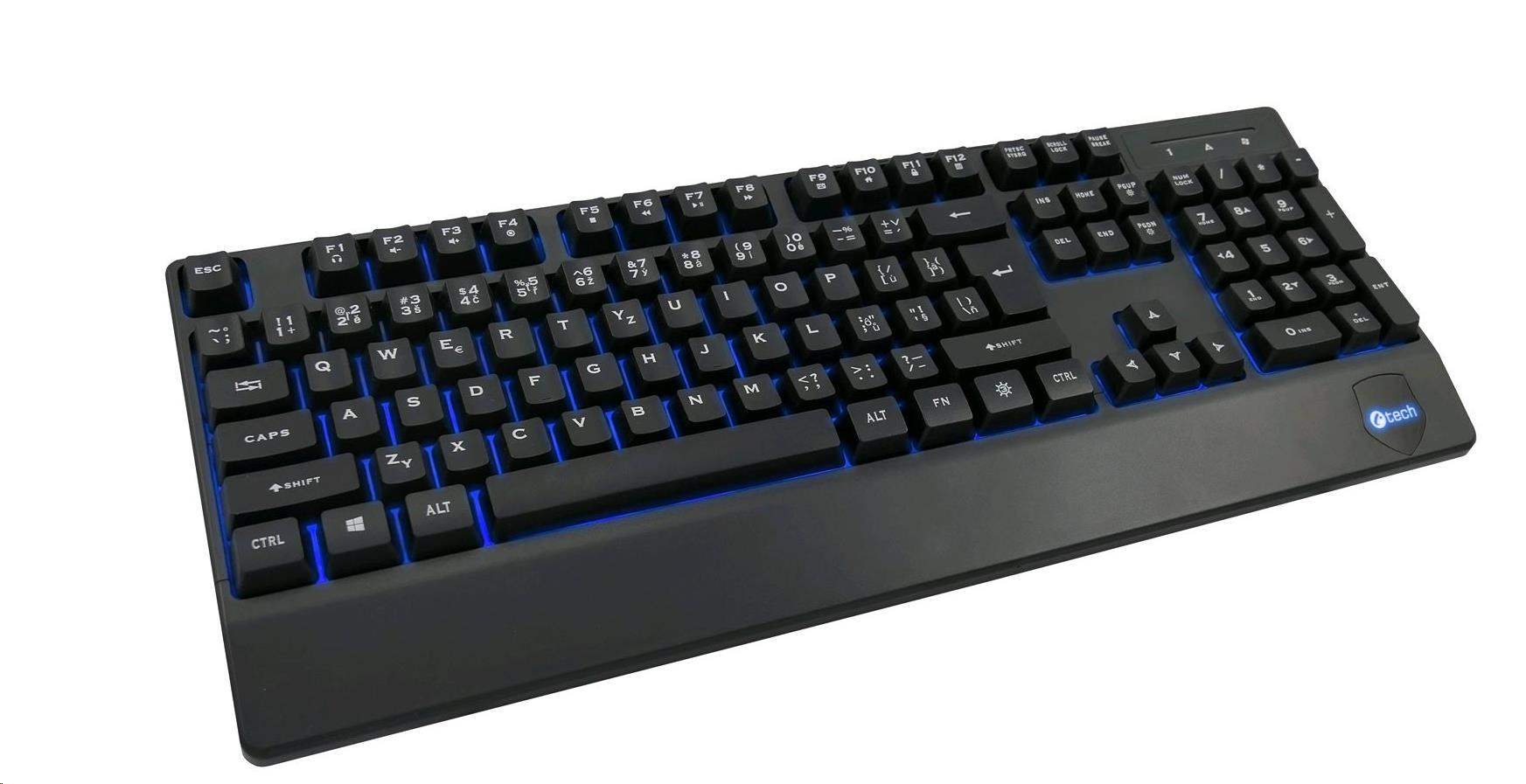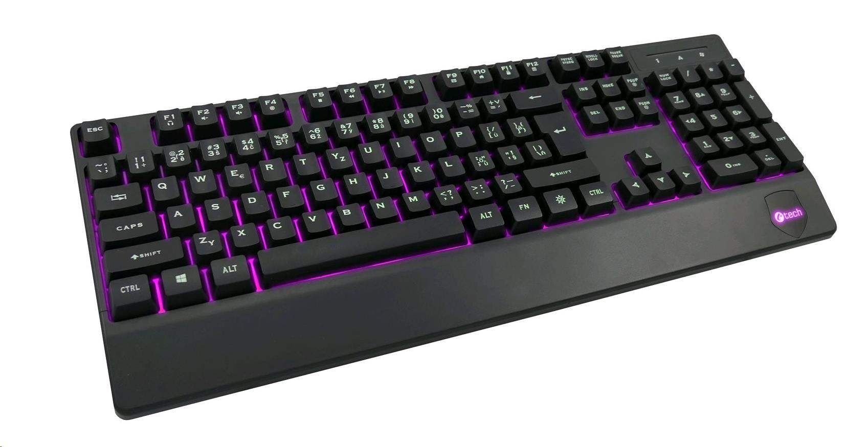 Klávesnica C-TECH KB-104BK, USB, 3 farby podsvietenia, čierna, CZ/SK