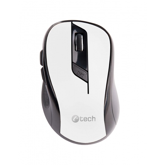 Myš C-TECH WLM-02, čiernobiela, bezdrôtová, 1600DPI, 6 tlačidiel, USB nano prijímač