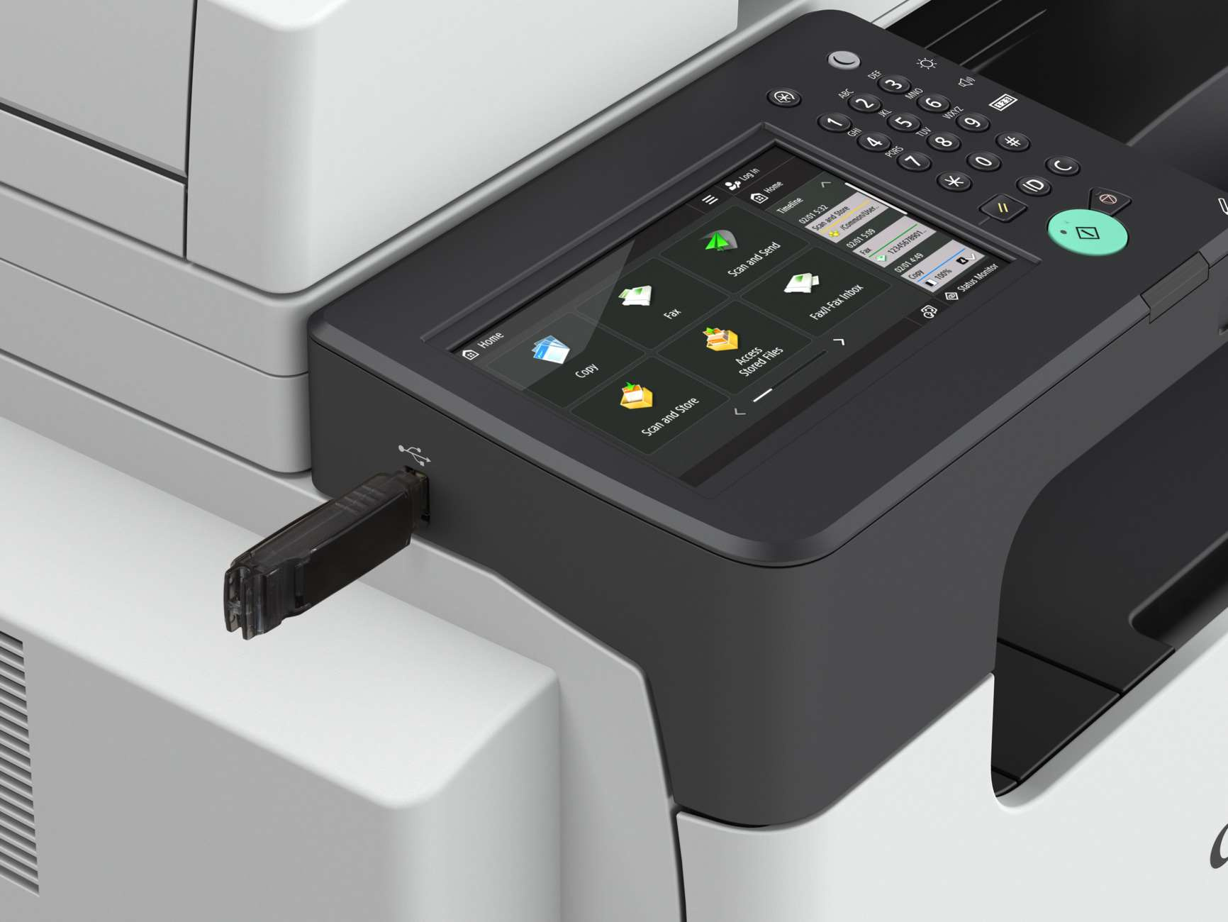 | Zabezpečenie siete | TLS, IPSec, overovanie IEEE802.1X, SNMP verzia 3, funkcia firewall (filtrovanie IP/MAC adries), podpora dvoch typov sietí (drôtová LAN/bezdrôtová LAN), aktivácia/deaktivácia (sieťové aplikácie, vzdialené používateľské rozhranie, rozhranie USB), oddelenie faxu G3 od LAN, oddelenie portu USB od LAN, skenovanie a odosielanie - s ohľadom na možnosť zavádzania prijatých e-mailových správ |