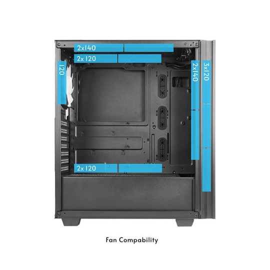 | Popredia | 3x 120 mm; 2x 140 mm |
