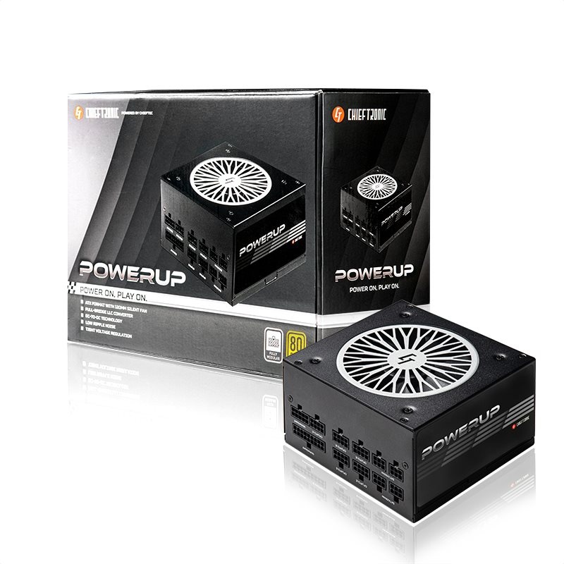 Sériou PowerUp chce spoločnosť Chieftronic priniesť dobre prijatú technickú kvalitu a vysoký výkon série PowerPlay na bežný hráčsky trh. Vďaka modernej technológii LLC s plným mostíkom a technológii DC-DC možno dosiahnuť extrémne nízke hodnoty zvlnenia a prísnu reguláciu napätia.