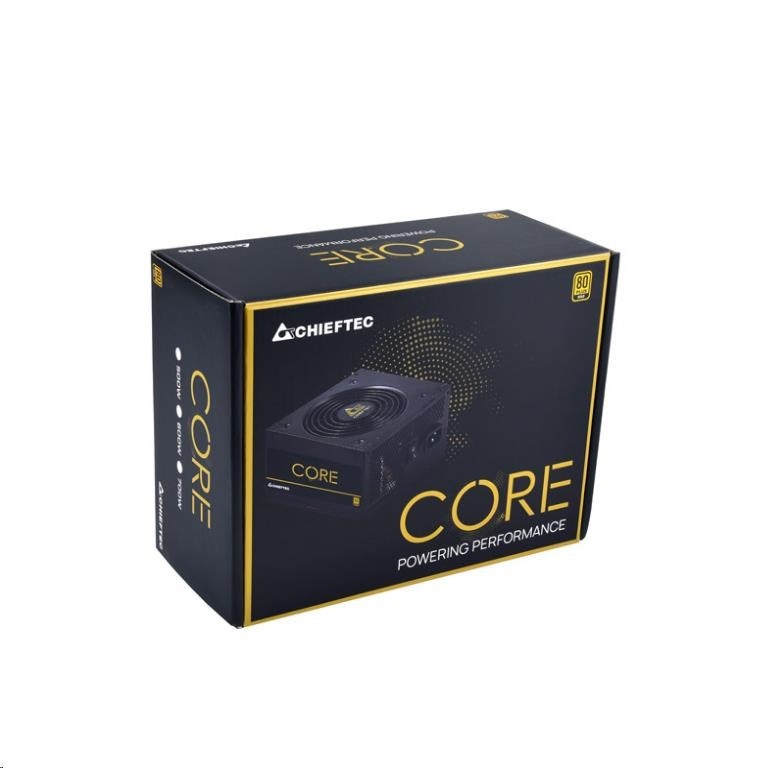 So sériou Core uvádza Chieftec na trh nový napájací zdroj s certifikáciou 80 PLUS Gold, ktorý zaujme nielen dobrým pomerom ceny a výkonu. Cieľom napájacích zdrojov série Core je ponúknuť kombináciu výkonu, účinnosti a spoľahlivosti bez zbytočne efektného dizajnu. Výkonový rozsah série Core od 500 do 700 W je ideálny pre zákazníkov, ktorí hľadajú prémiové napájacie zdroje za veľmi atraktívnu cenu.