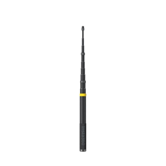Prodloužená selfie tyč pre akčné kamery Insta360 X4, X3, X2. Možno ju nastavovať až do 300 cm. Kamery dokážu vymazať tyč zo záberu, vďaka čomu je možné dosiahnuť pohľad z drona. Selfie tyč je vyrobená z odolného karbónu, jej váha je len 365g. Vo zloženej podobe je veľká len 36 cm, skladá sa zo 10 teleskopických sekcií.