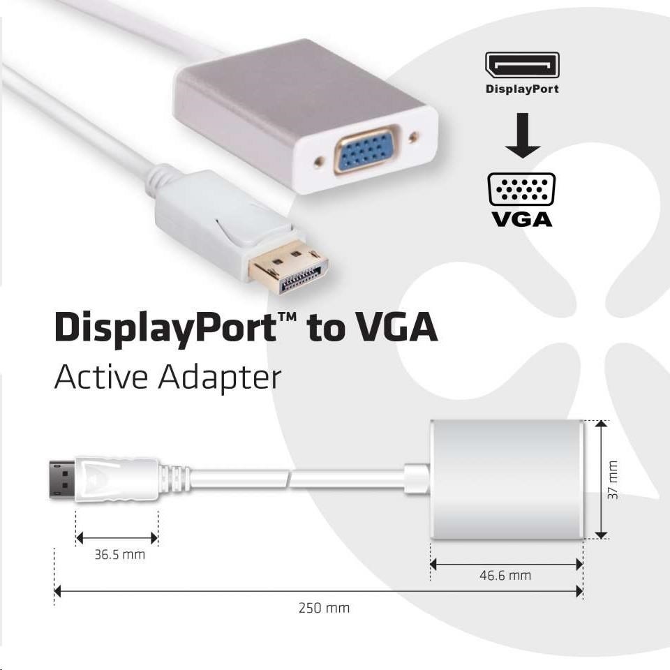 Adaptér Club3D Active DisplayPort na VGA (M/F), 25 cm