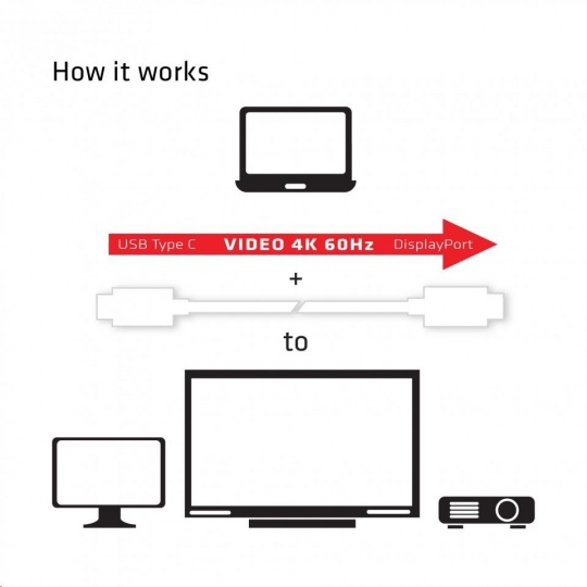 CAC-1517 Club 3D je prevodník signálu DisplayPort ™. Adaptér USB 3.1 Type C na DisplayPort ™ 1.2 UHD je najjednoduchšie riešenie pre pripojenie zdrojového zariadenia obsahujúceho port USB 3.1 typu C s alternatívnym režimom DisplayPort ™ k (U)HD monitoru, televízoru alebo projektoru s podporou rozhrania DisplayPort ™ 1.2. Napájaný portom USB typu C adaptér nevyžaduje žiadne externé napájanie a je ideálne pre použitie s najnovšími notebookmi / MacBookom (Pro) a tabletmi.