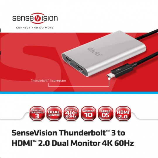 Club3D Adaptér Thunderbolt 3 na 2x HDMI 2.0 4K60Hz UHD