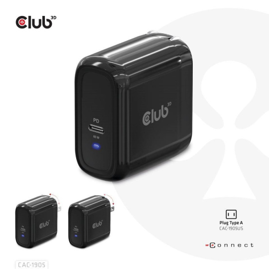 Cestovná nabíjačka Club3D PPS 65W technológia GAN, USB Type-C, Power Delivery(PD) 3.0 Podpora