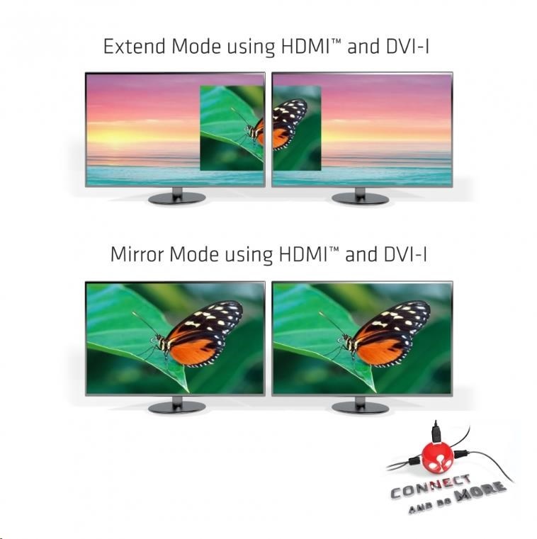 - Podporované maximálne rozlíšenie 2048x1152p (nebo 1920x1200p) @ 60Hz a pre nastavenie dvoch obrazoviek: 2 x 2048x1152p (nebo 1920x1200p) @ 60Hz