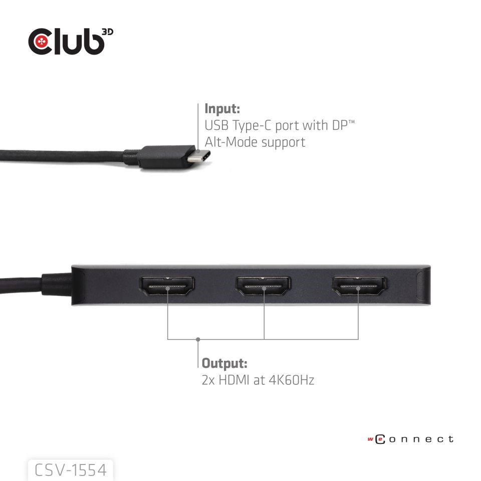 CSV-1554 je rozbočovač MST pre HDMI™. Tento rozbočovač USB-C MST je navrhnutý tak, aby vyhovoval vašim najvšestrannejším požiadavkám na pripojenie, ako je mobilný telefón, tablet, notebook atď. s výstupom USB-C, ktorý podporuje režim DP™ Alt-Mode ako hostiteľ pre 3 porty HDMI s podporou ultra vysokého rozlíšenia. Podporuje DP2.1 AltMode a umožní vám výstup jedného displeja s maximálnou kapacitou jeden 8K30Hz alebo dve obrazovky s podporou 8K30Hz + 4K144Hz alebo trojité displeje, každý s frekvenciou 4K60Hz. Podporuje všetky zariadenia kompatibilné s rozhraním USB-C alebo Thunderbolt4 s podporou alternatívneho režimu DisplayPort.
