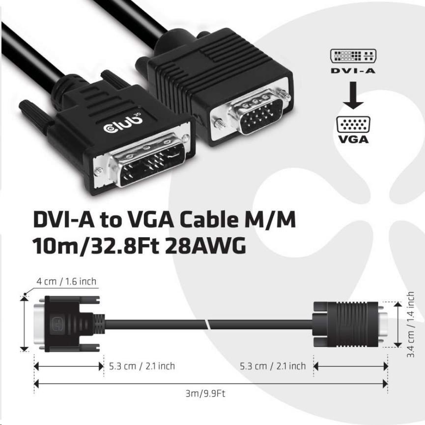Club3D kábel DVI-A na VGA, 3 m, 28 AWG
