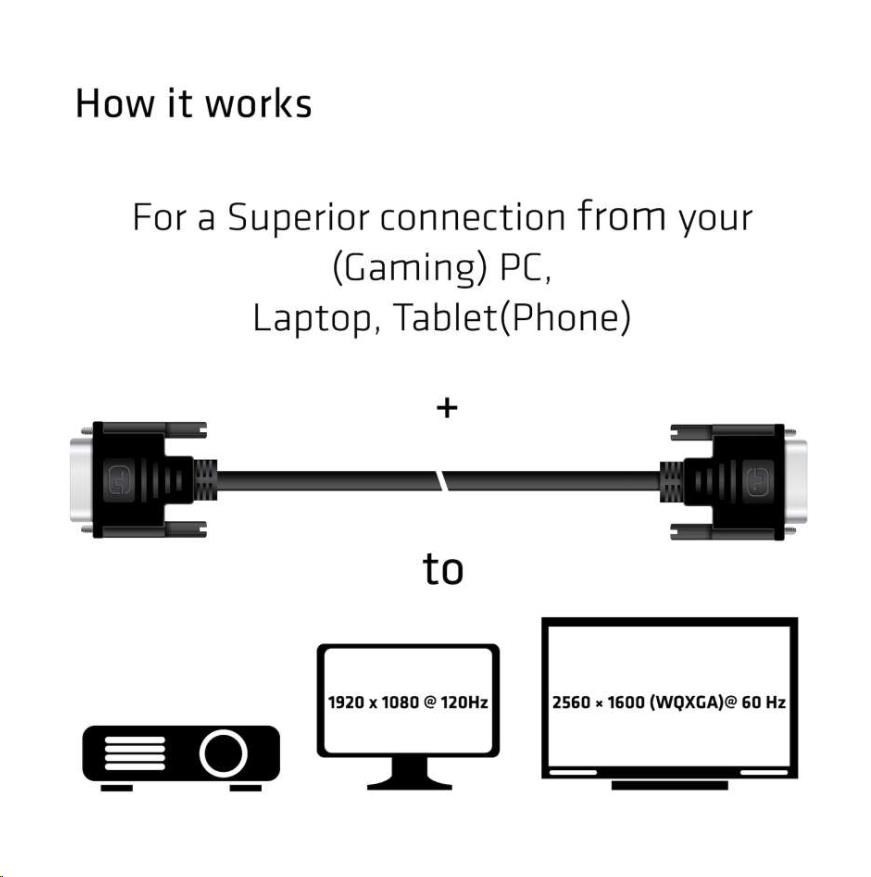 Club 3D CAC-1223 je kábel DVI-D(24+1) Male na DVI-D(24+1) Male. Tento kábel je plne obojsmerný. Tento kábel CAC-1223 je najjednoduchším riešením na pripojenie monitora DVI-D, projektora alebo televízora k výstupu DVI-D počítača/notebooku/hernej konzoly.
