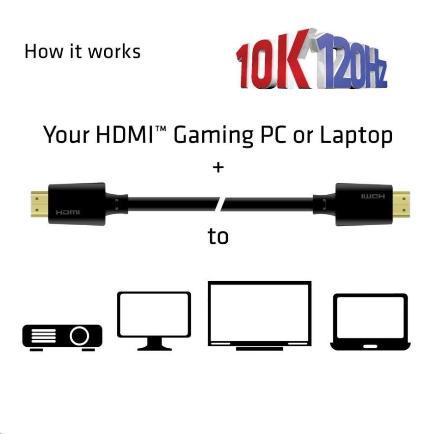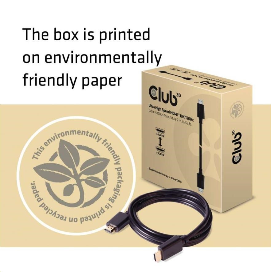 Club 3D CAC-1372 Ultra High Speed HDMI™2.1 Certifikovaný kábel je skonštruovaný tak, aby zvládol najvyššiu kvalitu video- a audio- signálov.