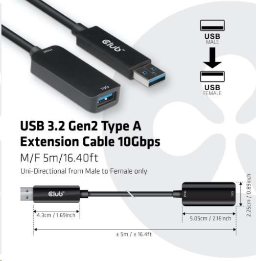 Club 3D CAC-1411 je predlžovací kábel USB typu A na predĺženie a posilnenie signálu USB až do 5 m/16.4 ft. Je kompatibilný s rozhraním USB 3.2 Gen 2 s maximálnou rýchlosťou prenosu dát 10 Gb/s. Je kompatibilný s nižšími verziami, upozorňujeme, že špecifikácie budú obmedzené pripojeným zariadením.
