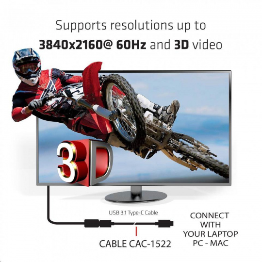 Club-3D USB 3.1 TYPE C MALE TO TYPE C MALE USB 3.1 (10Gbps) Type C PowerDelivery  0.8M/2.6Ft Cable Support 3840x2160(60Hz)