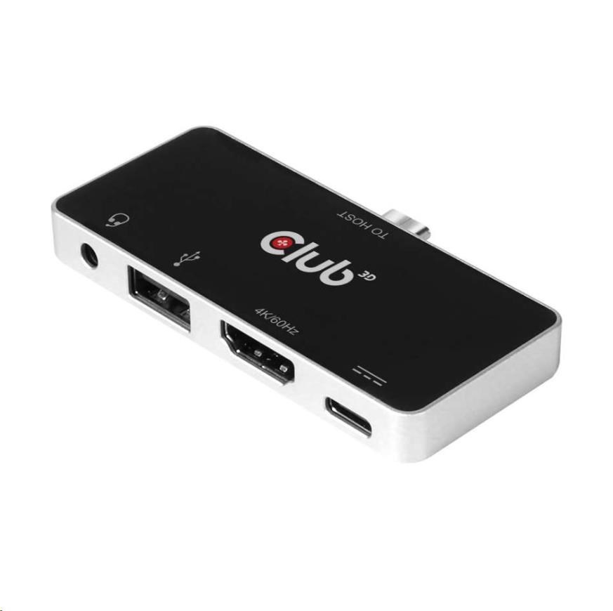 Club3D hub pro mobilní telefony USB Type C 4-in-1 Hub to HDMI™ 4K60Hz USB Type C PD / USB Type A / Audio jack