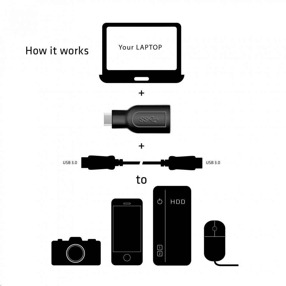 Adaptér Club 3D USB 3.1 type C to USB 3.0 umožňuje pripojenie vašich stávajúcich USB periférií, pamäťových zariadení a dokovacích staníc s rozhraním USB typu A do notebookov, profesionálnych tabletov a Ultrabookov s rozhraním USB 3.1 typu C. Adaptér je spätne kompatibilný a podporuje tiež rozhranie USB 2.0. Špecifikácia USB 3.0 SuperSpeed zaisťuje prenos rýchlosti 5 Gb/s pre rýchly prenos veľkých súborov.