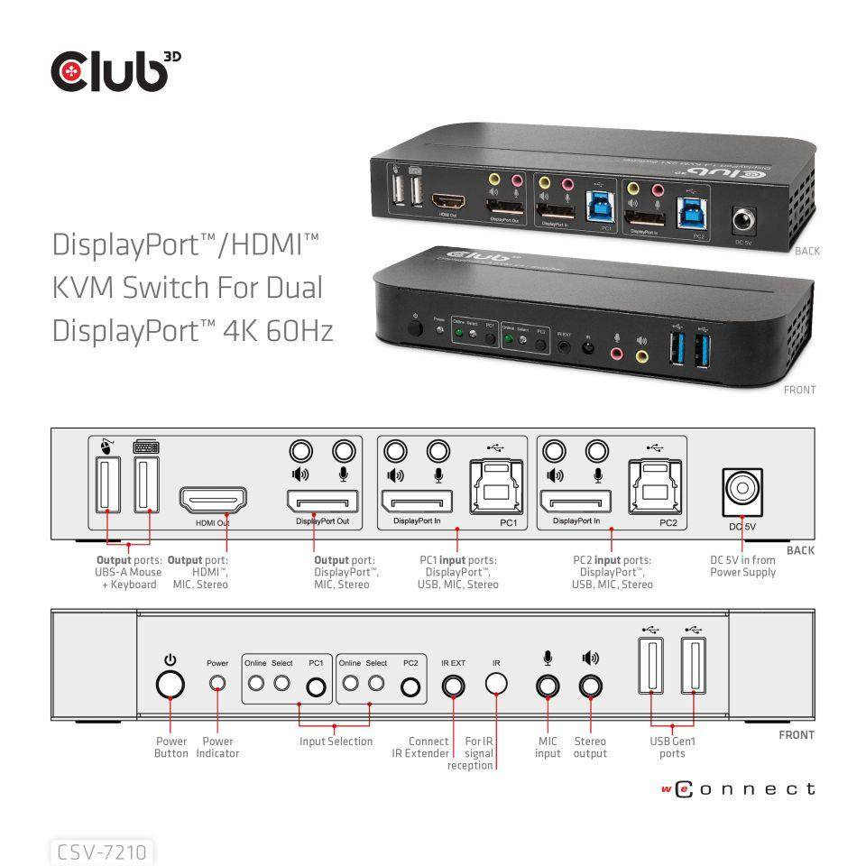 Club3D Network Switch - Prepínač, DP/HDMI KVM prepínač - Dual DP 4K 60Hz