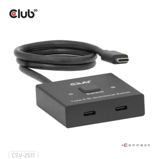 Plnohodnotný obousmerný prepínač Club 3D CSV-2511 môže prepínať dva zdroje na jeden displej alebo jeden zdroj na jeden zo dvoch displejov. Tento prepínač podporuje viac rozlíšení a až 8K alebo prenos dát max. 10 Gb/s alebo nabíjanie PD3.0 max. 100 W PD. Môže pracovať na všetkých hostiteľských zariadeniach USB-C®, kompatibilných so zariadeniami Thunderbolt.