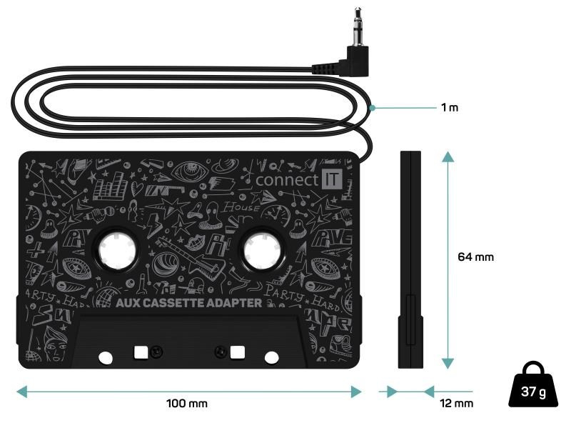 - Vďaka AUX kazetovému adaptéru budete môcť počúvať hudbu z vášho obľúbeného digitálneho zariadenia, ako je napríklad mobilný telefón, MP3 prehrávač či ďalšie multimediálne zariadenie. Stačí ho vložiť do prehrávača a pomocou kábla prepojiť so zariadením s výstupom 3.5 mm jack.