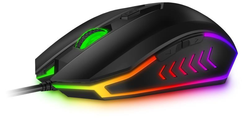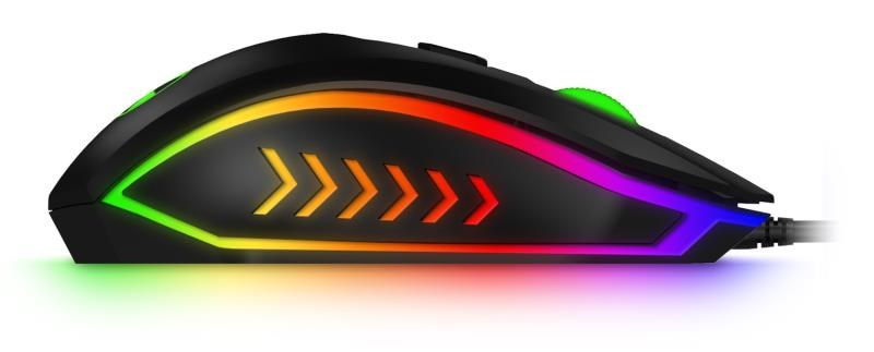 Profesionálny gamingový set klávesnice a myši Battle series pre hráčov počítačových hier v českom a slovenskom rozložení s RNBW podsvietením a trojstupňovou reguláciou intenzity podsvietenia klávesnice.