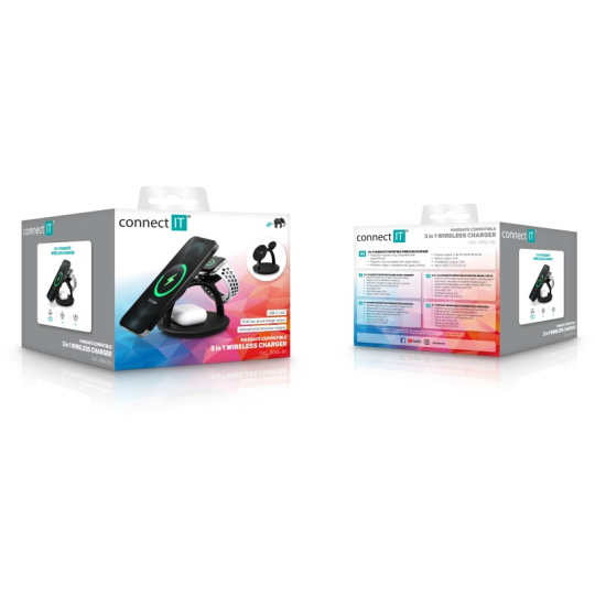 CONNECT IT Bezdrátová nabíječka 3v1 MultiCharge MagSafe pro IPhone, Apple Watch a AirPods, 15 W, Černá