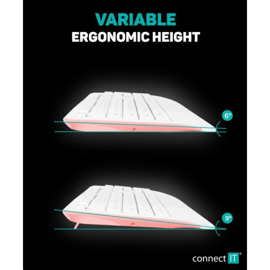CONNECT IT Combo bezdrôtová bielo-ružová klávesnica + myš, (+1x AAA +1x AA batérie zdarma), CZ + SK rozloženie