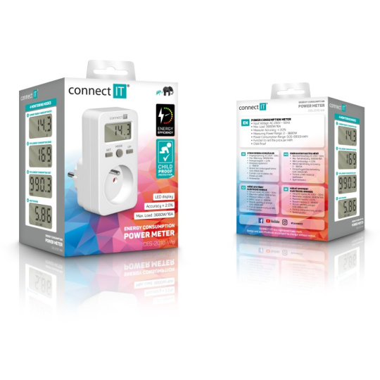 Digitálny merač CONNECT IT "PowerMeter" s jednoduchým dizajnom slúži na meranie spotreby elektrickej energie rôznych domácich spotrebičov. Merač disponuje veľkým LED displejom a jednoduchým ovládaním. Vďaka tomu je veľmi prehľadný a spoľahlivý.