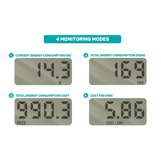 Merač spotreby elektrickej energie dokáže vypočítať zodpovedajúce finančné náklady a odhaliť, ktorý spotrebič odoberá najviac elektrickej energie a jeho prevádzka je teda najnákladnejšia. Medzi ďalšie funkcie merača patrí meranie okamžitého odoberaného výkonu. Tieto informácie Vám môžu prispieť k zníženiu nákladov na elektrickú energiu.