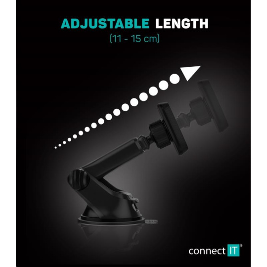 - Nastaviteľná dĺžka ramena od 11 do 15 cm, aby vyhovovala aj veľmi šikmým čelným sklám alebo atypickým prístrojovým doskám