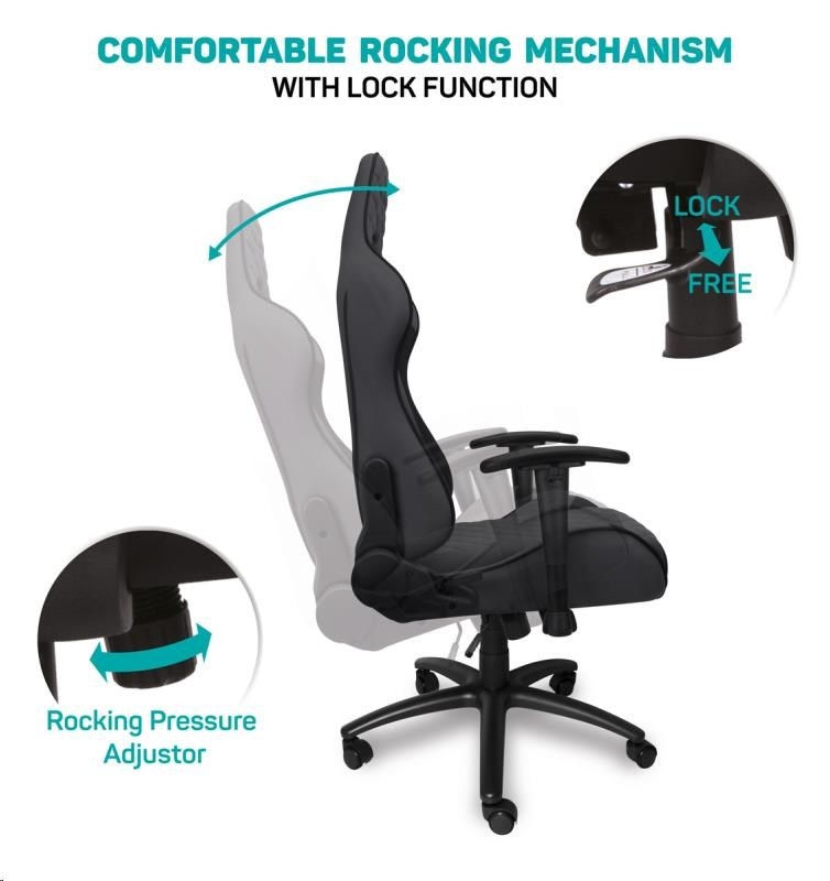 Vyniká luxusným spracovaním, moderným ergonomickým dizajnom a veľmi stabilnou konštrukciou. Mnohotvárne nastavenie vyhovie každej postave. Dizajn bol špeciálne navrhnutý pre dlhodobé sedenie a umožňuje aj bežnú prácu doma alebo v kancelárii. Ideálne pre mnohohodinové hranie bez kompromisov.