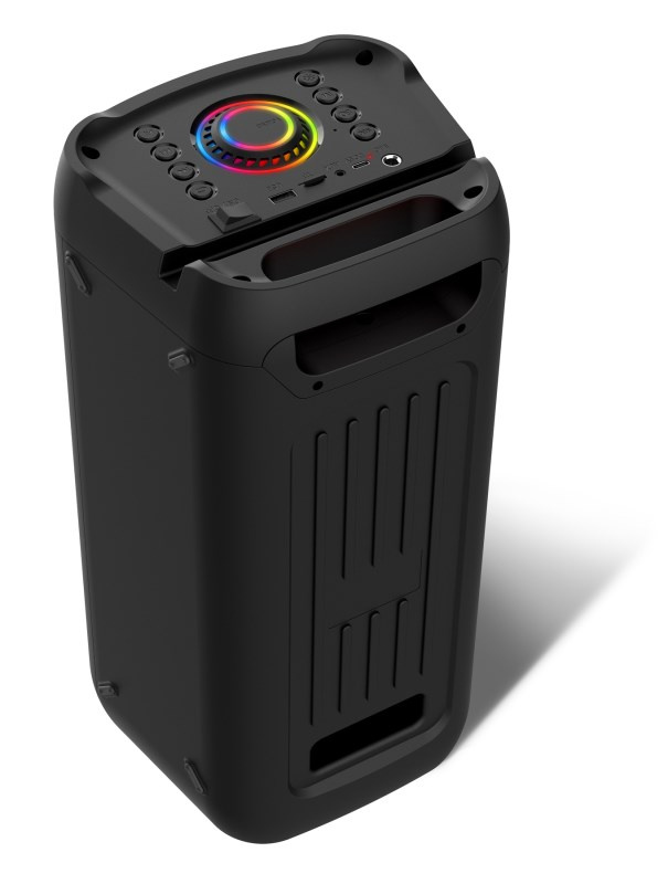 V hornej časti reproduktora sa nachádzajú všetky potrebné ovládacie tlačidlá a nechýba ani vestavený mikrofón s funkciou hlasitého hands-free na uskutočňovanie telefónnych hovorov - stačí prijať hovor a hlas volajúceho počujete priamo v reproduktore. Vďaka dodávanému externému mikrofónu a KARAOKE funkciám na diaľkovom ovládači si užijete veľa zábavy s priateľmi. Batéria s kapacitou 4500 mAh zabezpečí až 10 hodín prehrávania a je možné ju nabiť pomocou dodávaného USB-C kábla z akéhokoľvek USB nabíjačky alebo power banky.