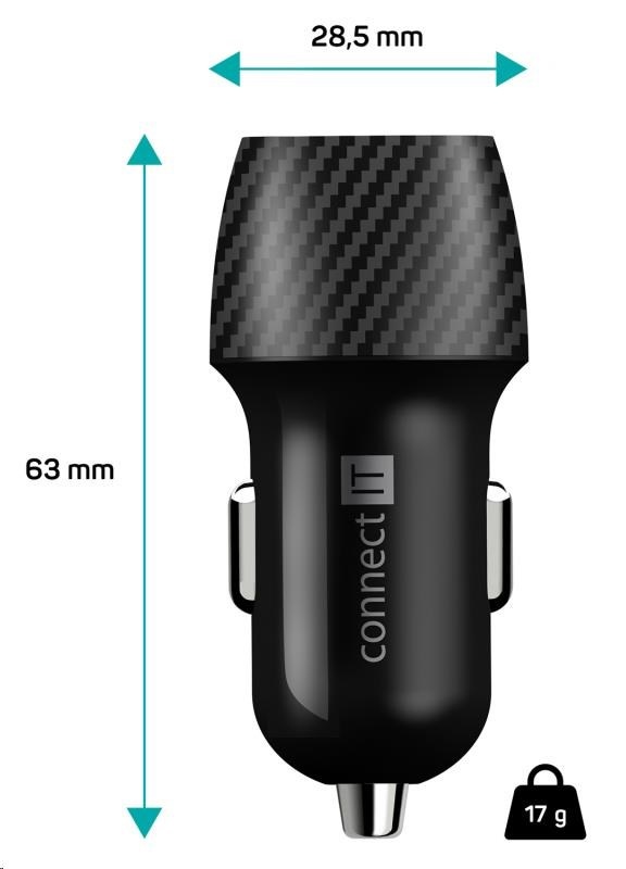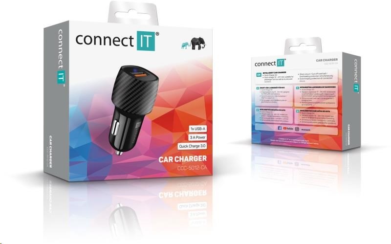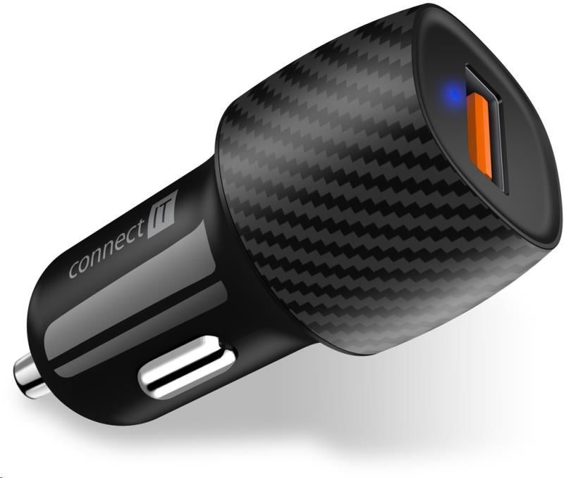 CONNECT IT InCarz QUICK CHARGE 3.0 nabíjačka do auta, 1x USB-A, 3 A, uhlíková