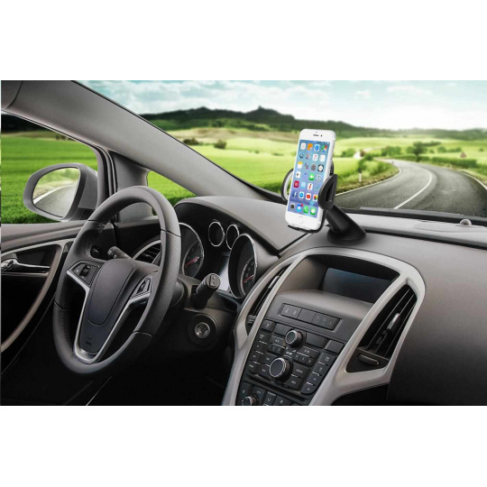 Univerzálny držiak do auta slúži na pripevnenie mobilného telefónu na sklo alebo palubnú dosku auta.