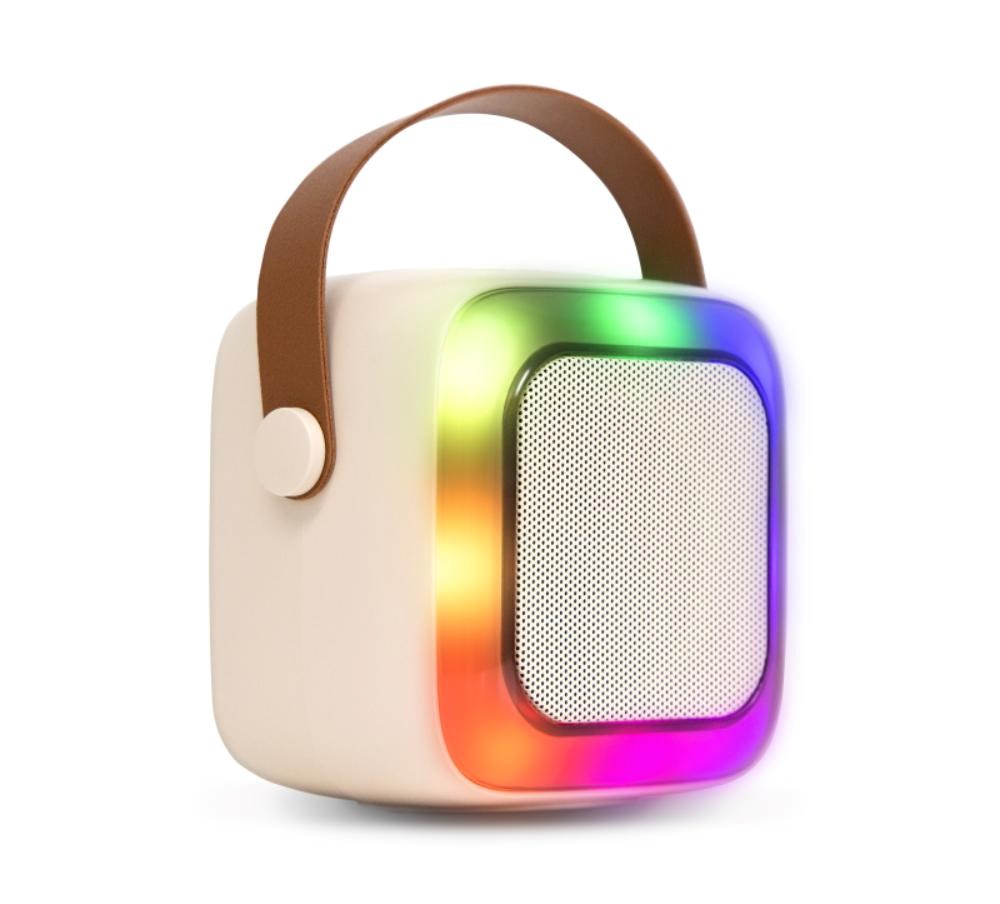 Přední panel disponuje barevným LED podsvícením s možností přepínání několika světelných módů a v horní části reproduktoru se nachází všechna potřebná ovládací tlačítka. Díky dvěma mikrofonům s několika zvukovými efekty si užijte spousty zábavy s přáteli. Baterie s kapacitou 1200 mAh zabezpečí až 6 hodiny přehrávání a lze ji nabíjet pomocí dodávaného USB-C kabelu z jakékoliv USB nabíječky nebo power banky.