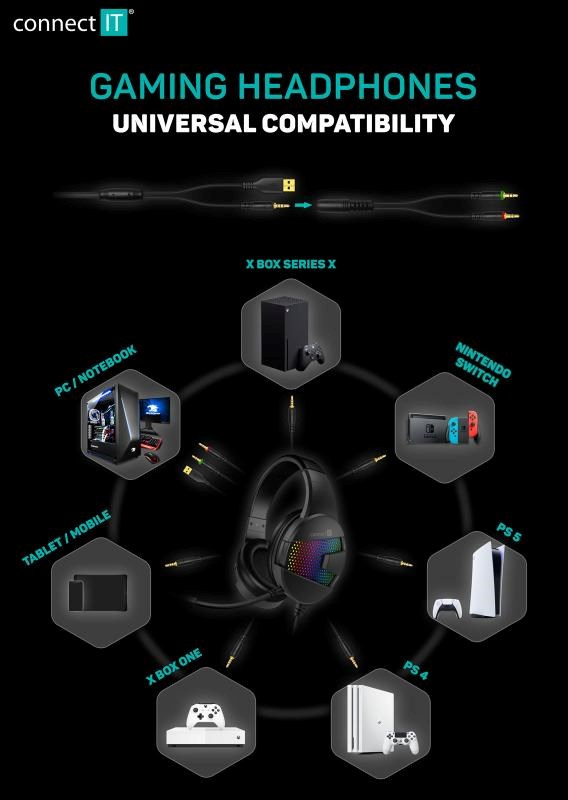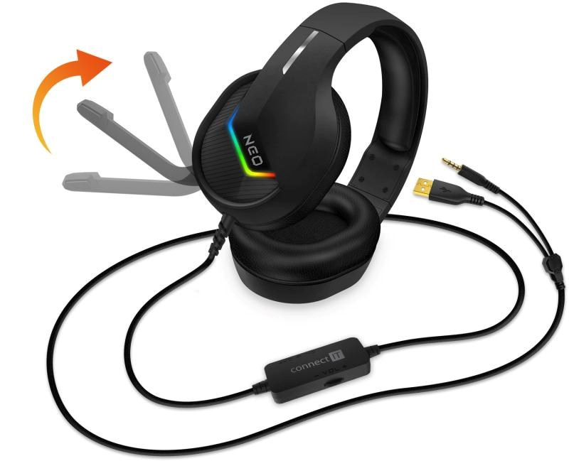 CONNECT IT NEO herní sluchátka s mikrofonem, 1xJack+USB, černá
