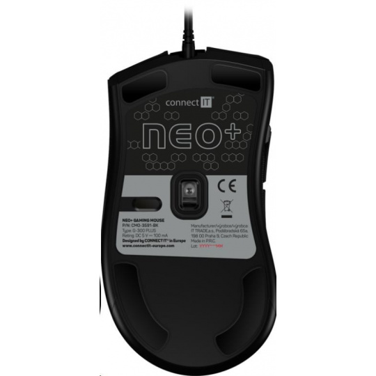 Okrem bežných funkcií je táto myš jedinečná svojou nastaviteľnou veľkosťou s odnímateľným pravým bočným panelom. Takto si môžete myš prispôsobiť svojim potrebám. Časť myši je pokrytá povrchom "honeycomb grip" pre stabilnejší a pevnejší úchop aj počas dlhšieho hrania. Táto myš sa dodáva s hárkom propagačných nálepiek "CONNECT IT NEO" a softvérom, ktorý je k dispozícii na bezplatné stiahnutie na adrese www.connectit-europe.com. Táto séria je samozrejme vybavená prémiovým opleteným napájacím káblom a pozláteným konektorom USB.