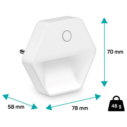 Světlo disponuje touch tlačítkem, které umožňuje zapnout/vypnout světlo a nastavit jas světla ve 3 úrovních. Světlo stačí jednoduše zapojit do libovolné zásuvky a při příkonu 0,60 W se nemusíte bát spotřeby elektrické energie. LED zdroj světla disponuje světelným tokem 30 lumenů.