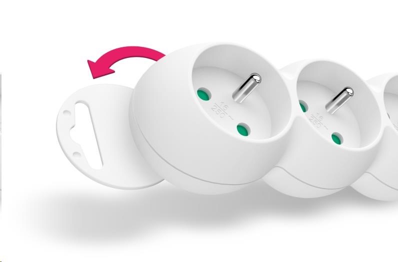Predlžovací kábel 230 V je vybavený hlavným sieťovým vypínačom, ktorý po vypnutí súčasne úplne odpojí všetky pripojené spotrebiče od napájania. Ďalšou funkciou je ochrana všetkých zásuviek pred deťmi - zásuvky sú prístupné len vtedy, keď sú obe vidlice vložené súčasne, takže ich nemožno vložiť jednotlivo, napr. iba skrutkovač alebo pletacie ihlice. Vďaka otočeniu zásuviek o 45° je možné používať aj objemnejšie napájacie adaptéry alebo uhlové zástrčky. Výsuvná slučka v hornej časti zásuvkového modulu umožňuje zavesenie alebo pevnú inštaláciu na stenu (napr. v dielňach a garážach). Výrobok bol testovaný a certifikovaný európskym skúšobným centrom, spĺňa najprísnejšie bezpečnostné požiadavky a najnovšie normy a umožňuje pripojenie spotrebičov s celkovou spotrebou energie až do 2500 W.