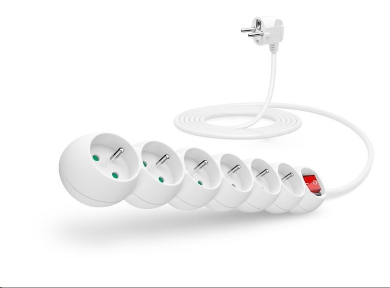 Predlžovací kábel CONNECT IT 230 V, 6 zásuviek, 3 m, s vypínačom (biely)