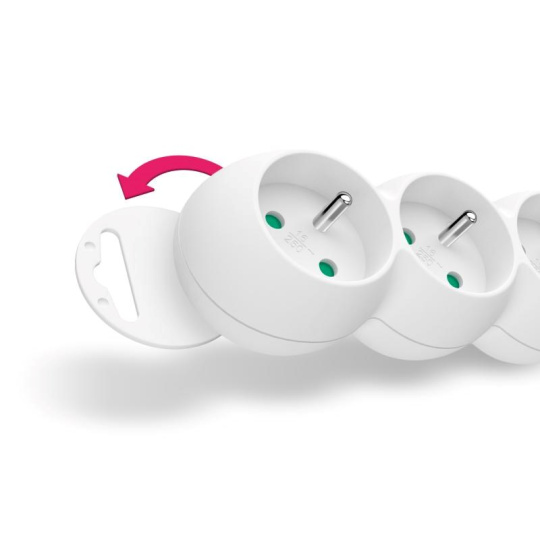 Predlžovací káblový prívod na 230V je vybavený hlavným sieťovým vypínačom, ktorý pri vypnutí úplne odpojí od prívodu elektrickej energie všetky zapojené spotrebiče naraz. Extra výbavou je detská ochrana všetkých zásuviek – zásuvky sú prístupné iba v prípade zasunutia oboch vidlíc naraz, teda nie je možné zasunúť jednotlivé napríklad len skrutkovač alebo pletacie ihlice. Vďaka pootočeniu zásuviek o 45° je možné používať aj objemnejšie napájacie adaptéry alebo uhlové koncovky. Výsuvné očko v hornej časti zásuvkového modulu umožňuje zavešenie alebo pevnú inštaláciu na stenu (s výhodou využijete napr. v dielňach a garážach). Výrobok bol otestovaný a certifikovaný v európskom testovacom centre a spĺňa najprísnejšie bezpečnostné požiadavky a najnovšie normy, takže umožňuje zapojenie spotrebičov s celkovým príkonom až 2300 W.