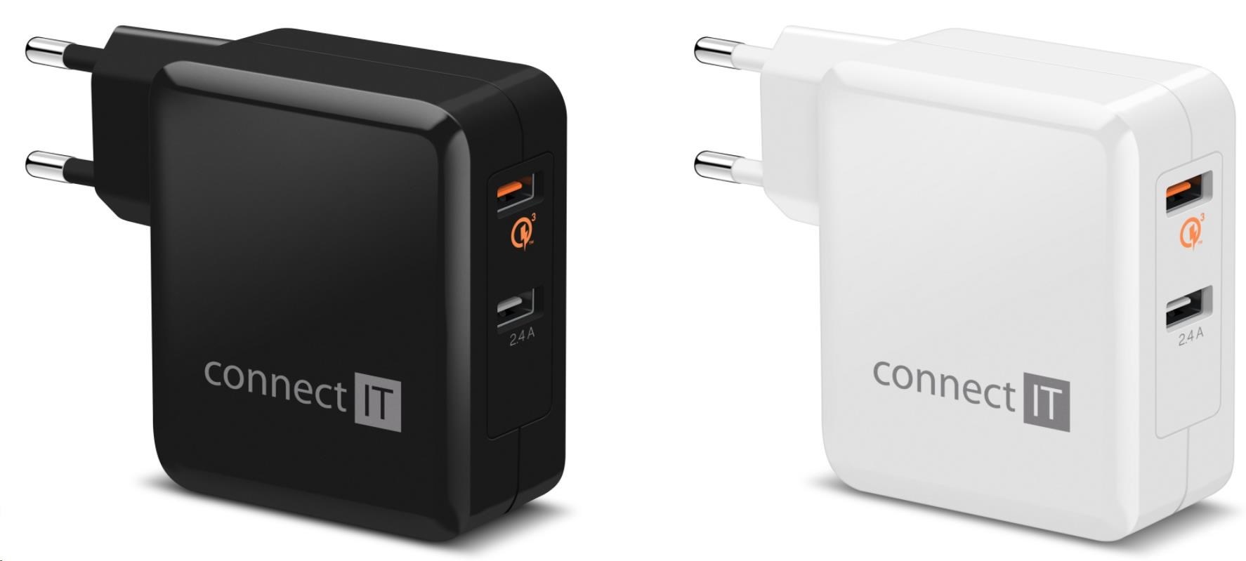 PRIPOJTE RÝCHLE NABÍJANIE 3.0 nabíjací adaptér 2x USB (3,4 A), QC 3.0, čierna