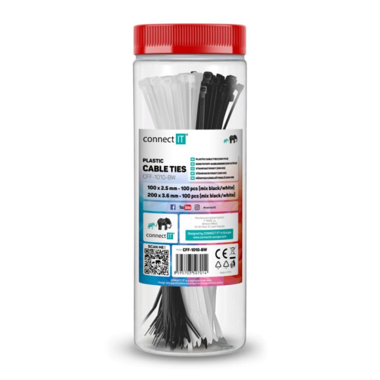 CONNECT IT Stahovací pásky na kabely ZipTie, Černá/Bílá