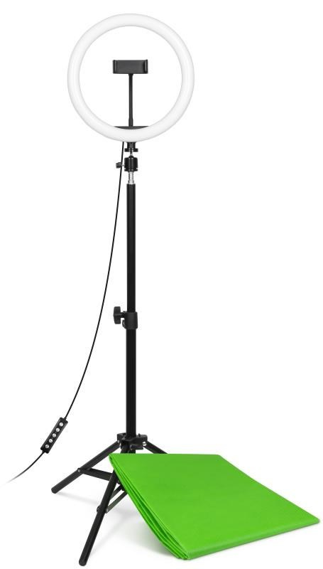 Ak chcete povýšiť svoje videá a fotky na vyššiu úroveň, využite priložený green screen, vďaka ktorému vaša tvorba zaujme unikátnym pozadím a získa originálnu atmosféru. Absolútna sloboda v nastavení požadovaného uhla je garantovaná uchytením svetla pomocou guľovej hlavy. Farebná teplota svetla je možné nastaviť od studenej po teplú v troch úrovniach. Držiak mobilného telefónu umiestnený na flexibilnom husom krku umožňuje pohodlné nastavenie do ľubovoľného uhla snímania fotografií a videí. Vo výbave nechýba diaľkové ovládanie na vypnutie/zapnutie svetla, nastavenie jeho intenzity alebo farebnej teploty.