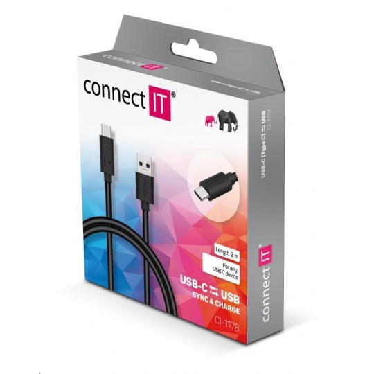 CONNECT IT Wirez USB-C (typ C) -> USB-A, USB 3.1 Gen 1, čierna, 2 m