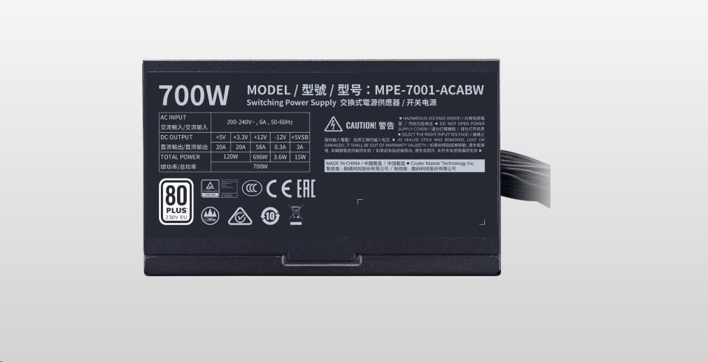 Cooler Master zdroj MWE White 700W V2, 120mm, 80+