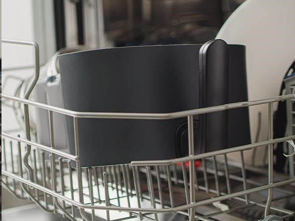Vyberateľný fritovací kôš a nádoba sú vyrobené z odolného, ??nepriľnavého a zdravotne nezávadného materiálu (BPA a BFOA FREE) a je možné ich umývať v umývačke. Vždy chladná rukoväť a tlačidlo na uvoľnenie koša eliminujú riziko popálenia a nechceného uvoľnenia.