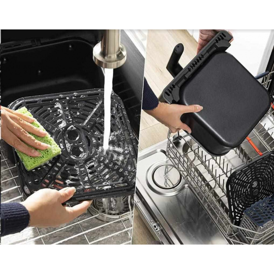Teplovzdušná fritéza COSORI CAF-P583S sa môže pochváliť obrovským objemom koša 6,4 litra s praktickým štvorcovým tvarom, ktorý uspokojí aj väčšie domácnosti. S výkonom 1700 W je fritéza mimoriadne výkonná, čo skracuje čas varenia a šetrí tak elektrickú energiu. Vďaka veľkosti varného priestoru fritézy je možné pripraviť celé kurča s hmotnosťou 3,5 kg naraz alebo 17 kuracích krídel, ktoré by sa veľmi ťažko zmestili do fritézy s kruhovým košíkom alebo objemom 3-4 l.