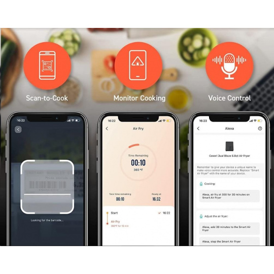 Vďaka ovládaniu SMART môžete pripravovať jedlá pomocou smartfónu. Jednoducho si stiahnite bezplatnú aplikáciu z Google Play alebo App Store. V aplikácii si môžete vybrať jednotlivé programy, prezerať recepty, sledovať priebeh prípravy jedla alebo nastavovať upozornenia. Fritéza je kompatibilná aj s Amazon Alexa a Google Assistant.