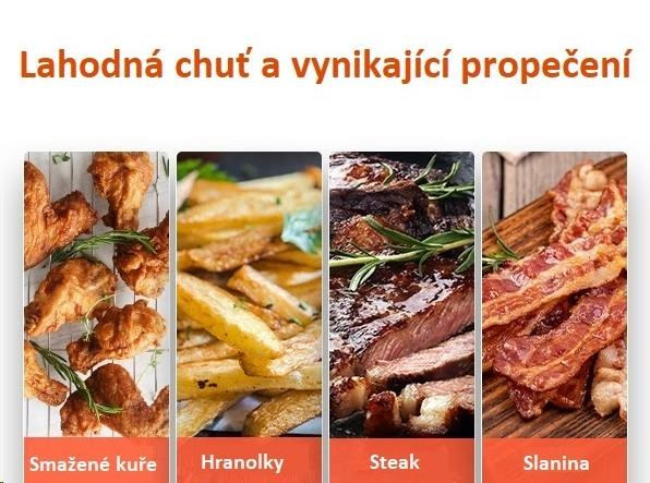 Maximálna teplota 230 ° C zrýchľuje varenie a zaručí dokonalú chrumkavosť a textúru jedla