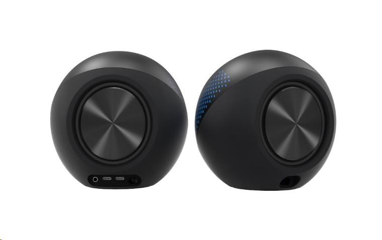 Reproduktory 2.0 sú vybavené 2,75" membránami s plným rozsahom, ktoré poskytujú výkon až 15 W RMS a špičkový výkon až 30 W pri pripojení k portu USB-C počítača. Bonusom je konštrukcia zvýšená pod uhlom 45°, ktorá je zárukou presnej projekcie zvuku.